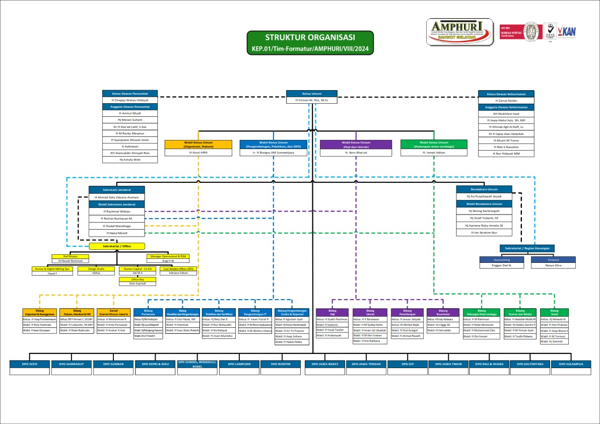 AMPHURI yang dideklarasikan pada Sabtu, 19 Sya’ban 1428H, bertepatan dengan 1 September 2007 di Hotel Manhattan, Jakarta menjadi satu-satunya asosiasi penyelenggara haji dan umrah yang telah meraih sertifikat ISO 9001:2015 (Sistem Manajemen Mutu) dari Bureau Veritas dan menerapkan tata kelola organisasi yang berorientasi pada pelayanan dengan tagline “Bangkit Melayani”. Dalam hal pembinaan anggota dan organisasi, selain membentuk kepengurusan di pusat, AMPHURI adalah satu-satunya asosiasi haji dan umrah yang memiliki pengurus di daerah atau perwakilan di berbagai daerah. Sampai saat ini, setidaknya ada 14 Dewan Perwakilan Daerah (DPD) yakni: